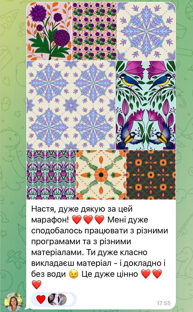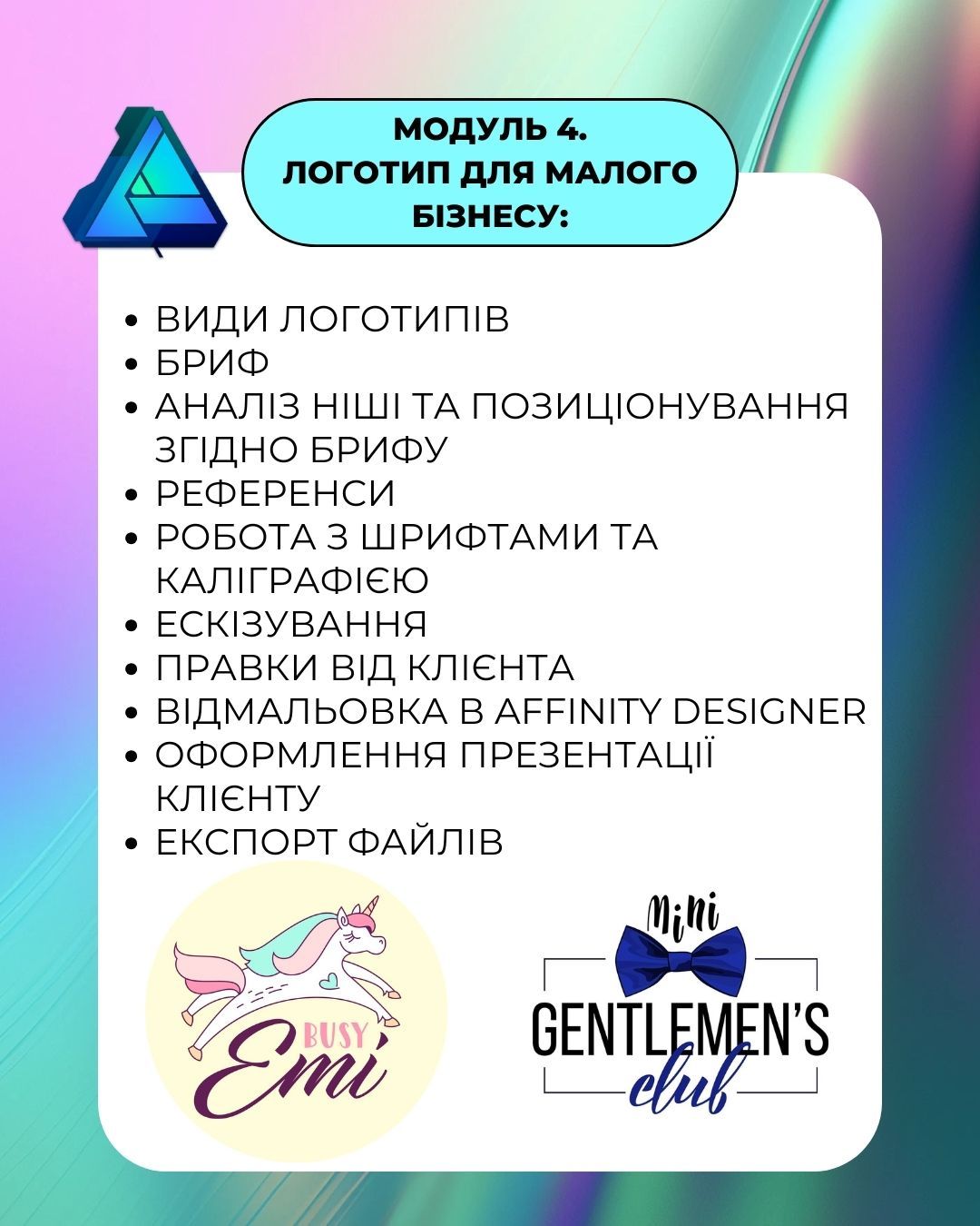 ✅ Створиш свою першу листівку, набір брендованих стікерів, логотип для малого бізнесу та колекцію патернів — з нуля до презентації клієнту.
