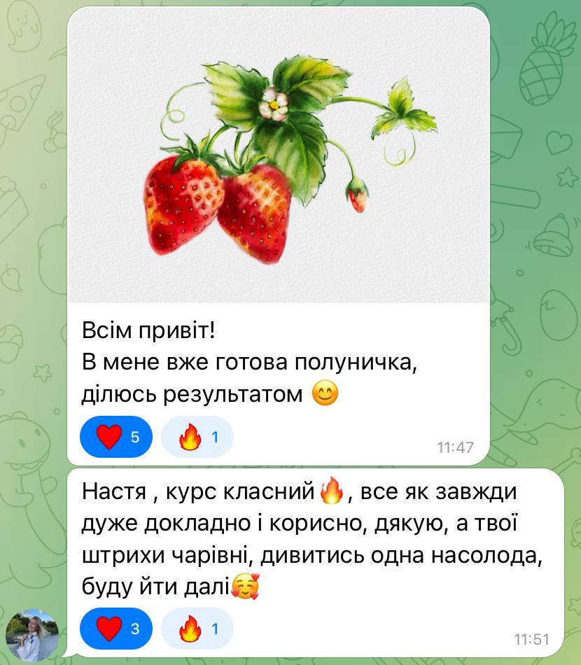 Так, 95% учнів вперше на курсі малюють в акварельному стилі. Уроки дуже детальні та покрокові.